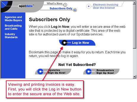 Take a self-guided tour of the Spotdata Electronic Invoice Archive service. See how easy it is for broadcasting and cable companies to access their past invoices for viewing and printing inside a web browser.